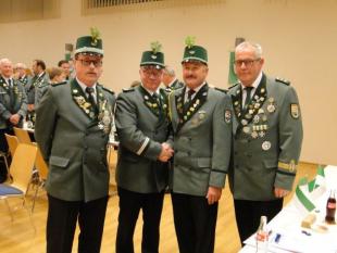 Der mittlerweile eingetroffene erste Brudermeister Schützenoberst Hubert Bonke, überbrachte die Grußworte des Bataillons und leitete mit der Wahl des Kompaniechefs eine Reihe von Neuwahlen ein.