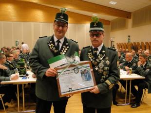Eduard Jüde und Ferdinand Wilsmann bekamen für ihren unermütlichen Einsatz im Schützenwesen den Kompaniehumpen verliehen.